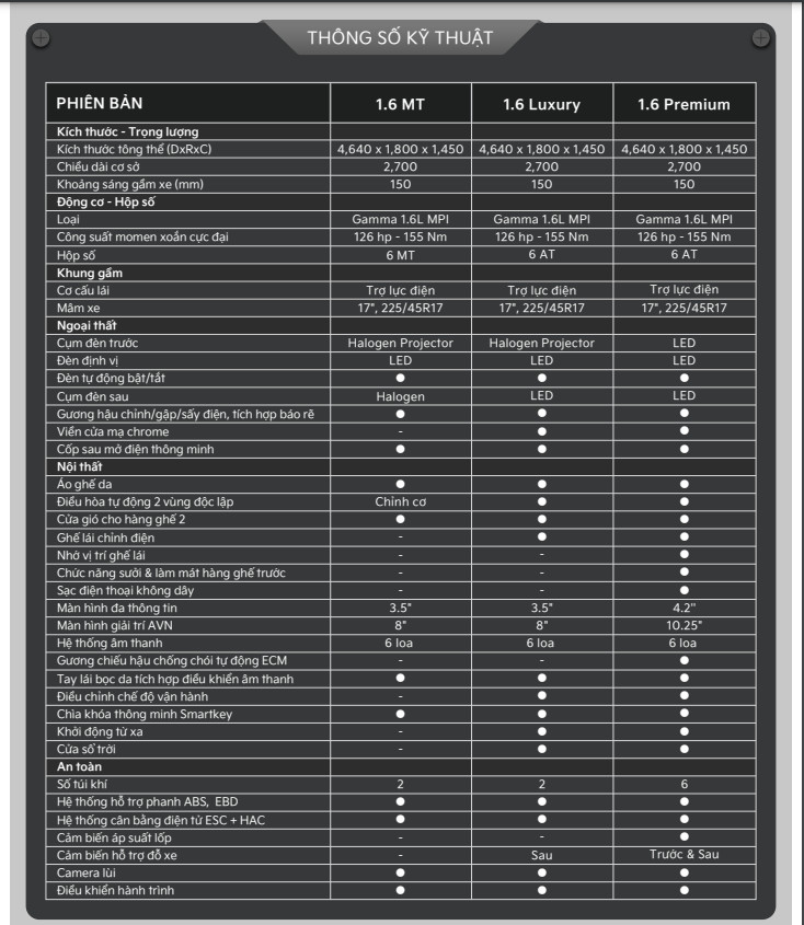 Siêu Phẩm Sedan Top #1 phân khúc. - Dài x Rộng x Cao (mm) 4.640 x 1.800 x 1.450 mm